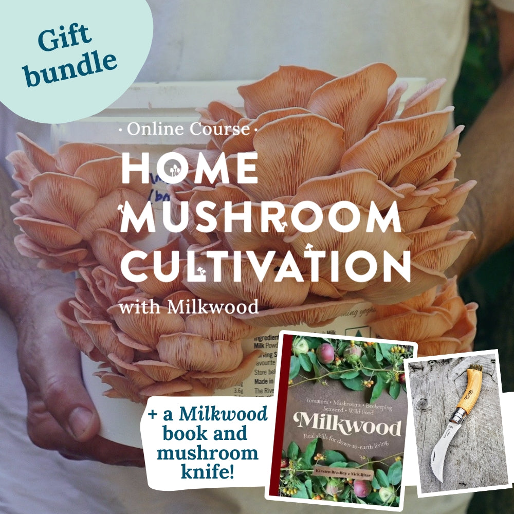 GIFT BUNDLE: Home Mushroom Cultivation course + Milkwood book + Mushroom knife